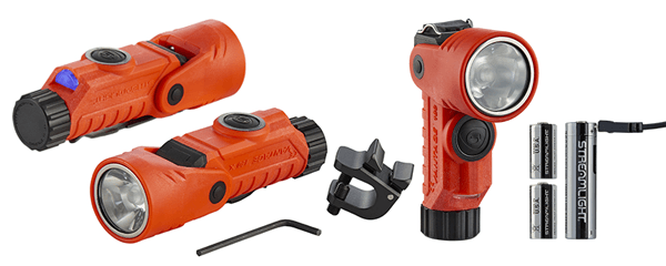 A nova e versátil Vantage 180 X para bombeiros é três luzes em uma! É uma luz montada no capacete para tarefas mãos-livres, uma luz de ângulo reto que pode ser conectada ao seu equipamento de proteção e uma lanterna de mão (recarregável)